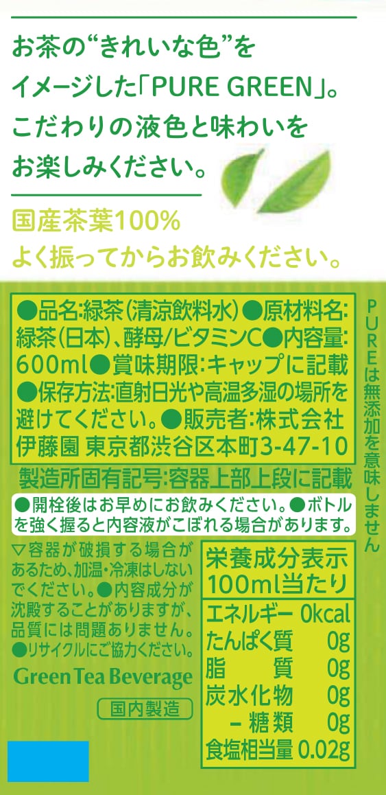 [48本]伊藤園 お~いお茶 PURE GREEN PET 600ml | ”お茶の常識、すてましょう”若葉のような香りすっきりとした味わい