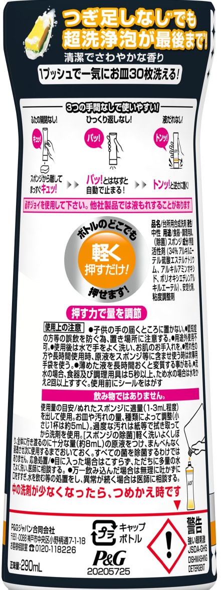- ジョイ PRO洗浄 まとめ洗い用 逆さボトル 290ml