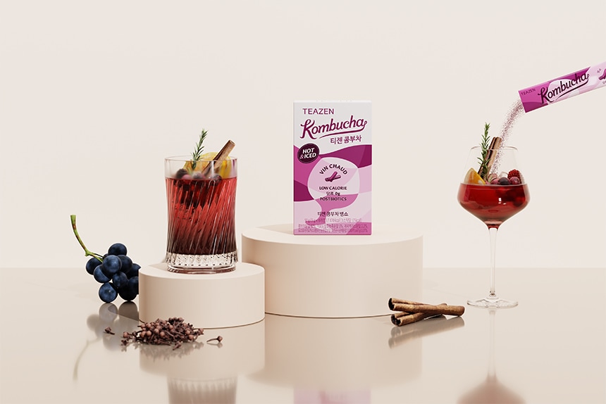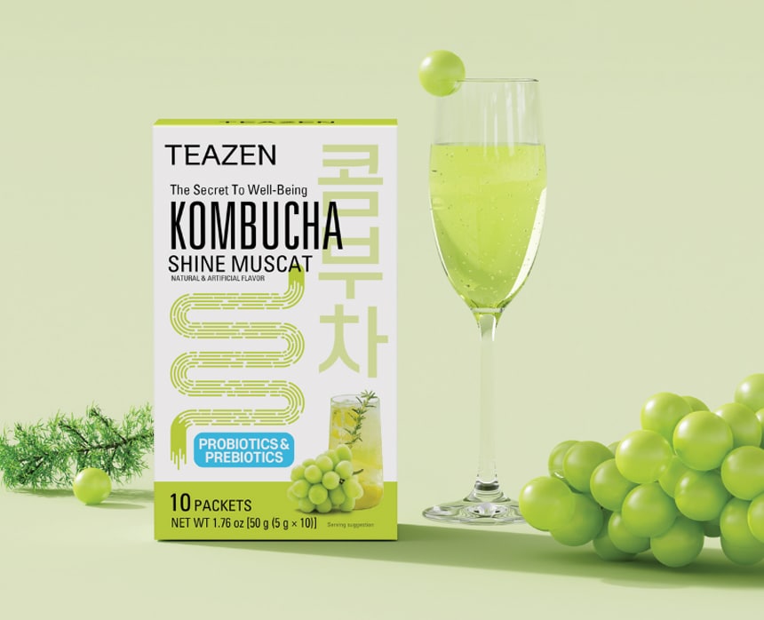 お茶と健康的な暮らしをコンセプトに作られた韓国のティーブランド「TEAZEN(ティーゼン)」は、自社の茶葉を粉末にする技術を生かし、海外セレブの間でも話題のコンブチャの粉末化に成功!