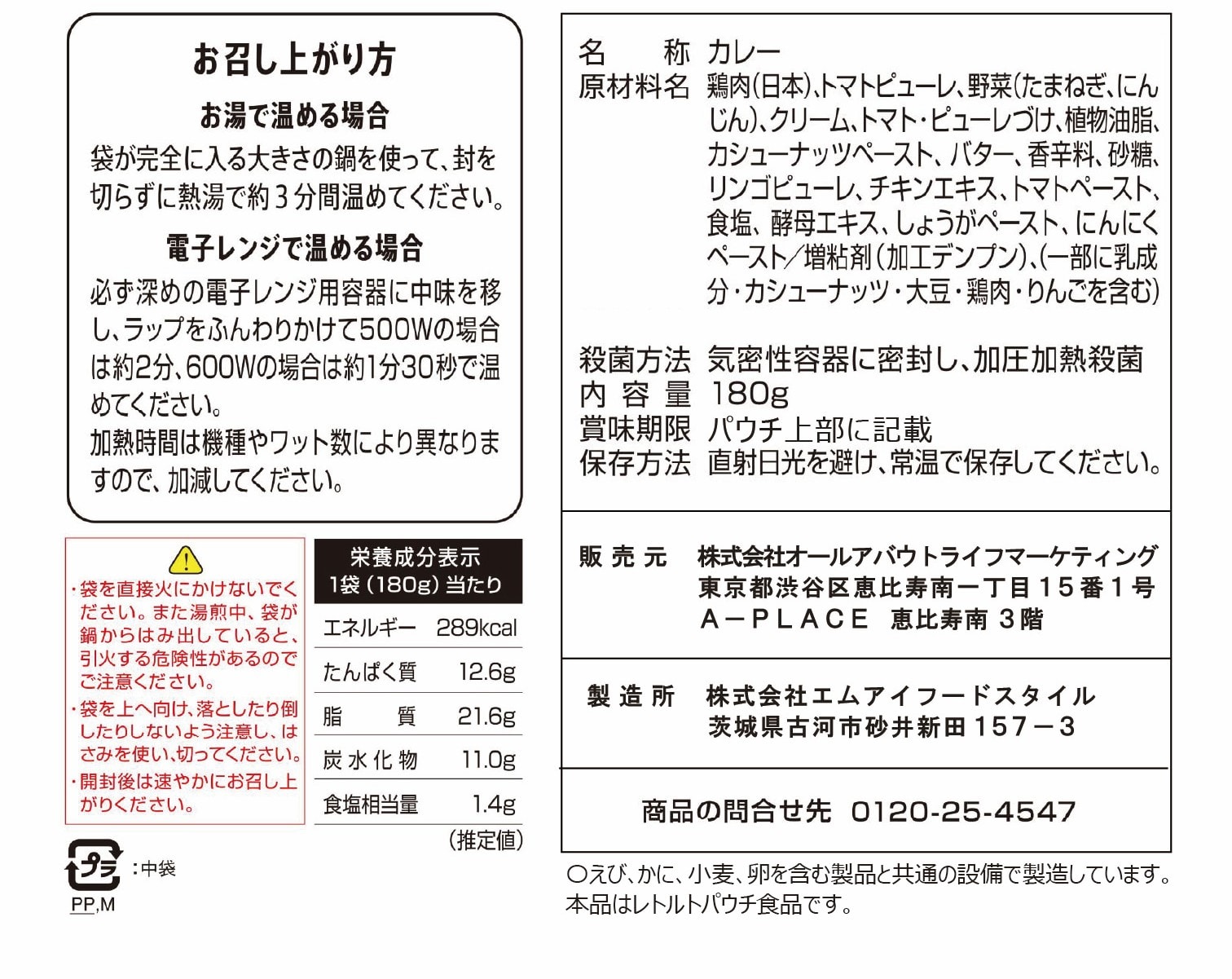 - <シンプル百科>トマトとカシューナッツのバターチキンカレー 180g×5食