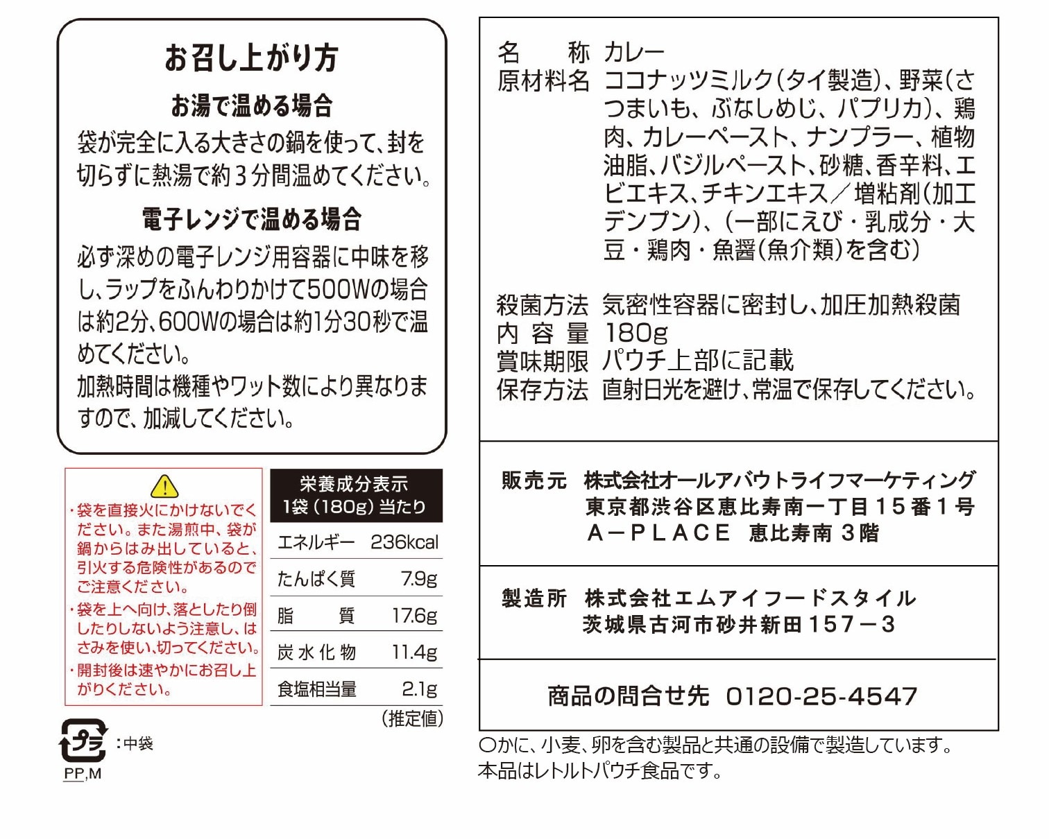 - <シンプル百科>国産鶏とおいものグリーンカレー 180g×5食