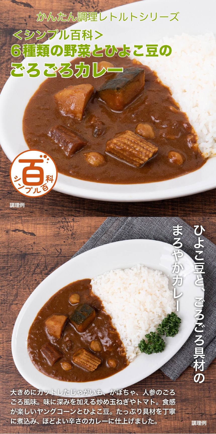 [計5食]<シンプル百科>6種の野菜とひよこ豆のごろごろカレー 180g×5食×1個 | 大き目にカットしたごろごろ具材にひよこ豆を加えたまろやかで程よい辛さのカレー