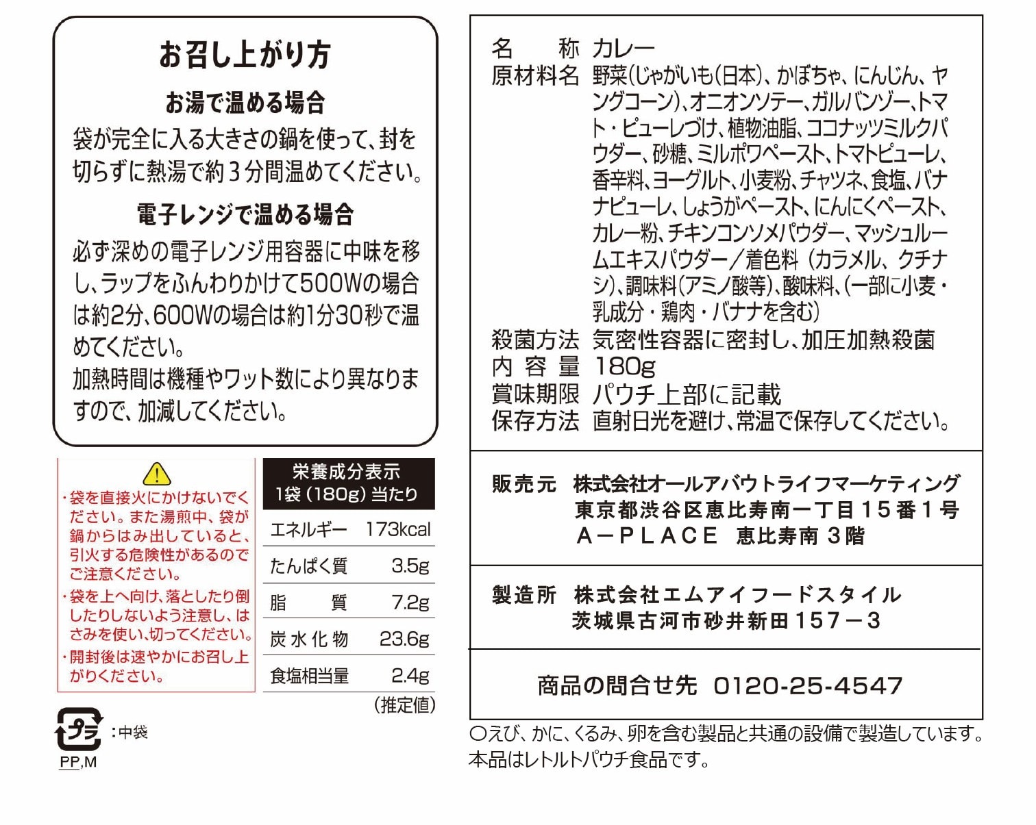 - <シンプル百科>6種の野菜とひよこ豆のごろごろカレー 180g×5食