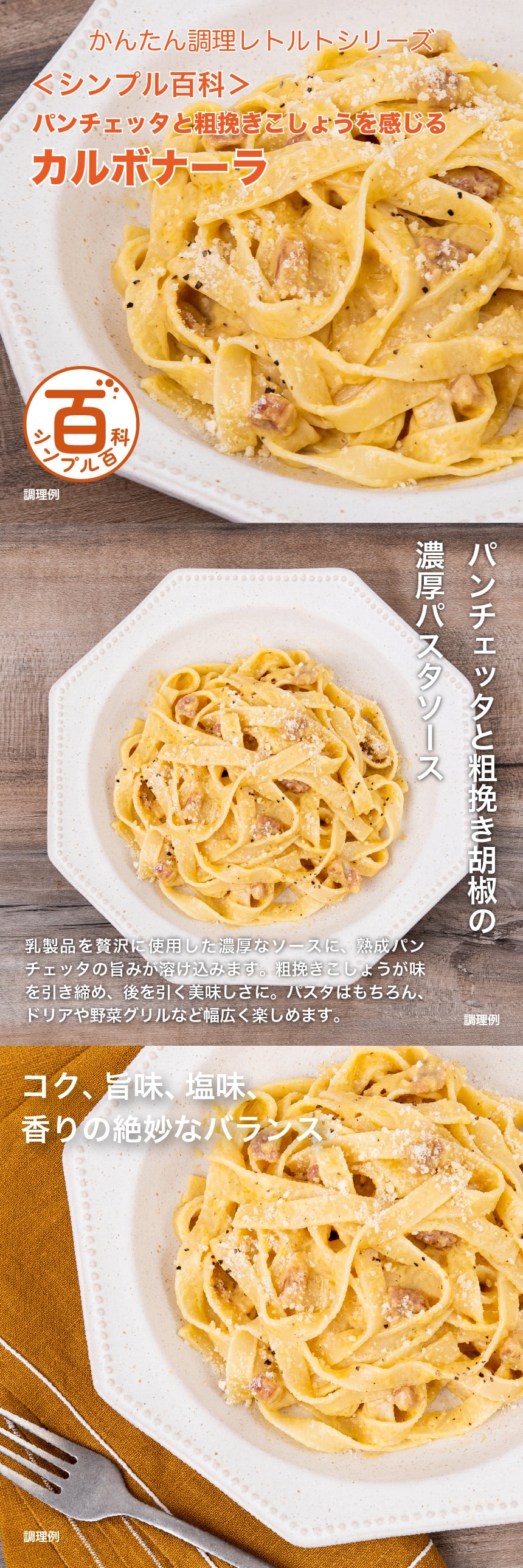 [計5食]<シンプル百科>パンチェッタと粗挽きこしょうを感じるカルボナーラ 115g×5食×1個 | パンチェッタと粗挽き胡椒がアクセントの濃厚クリーミーパスタソース。