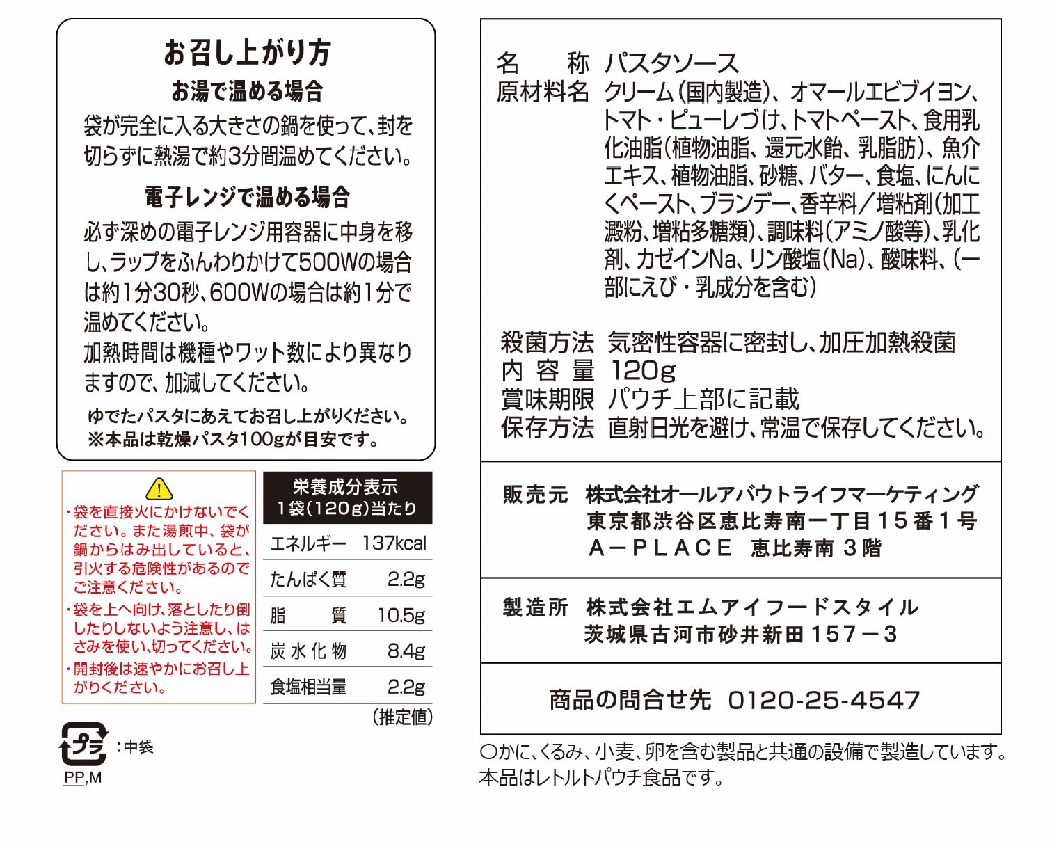[計10食]<シンプル百科>オマール海老のコク旨トマトクリーム 120g×5食×2個 | オマール海老のうまみにトマトクリームを合わせたパスタソース。