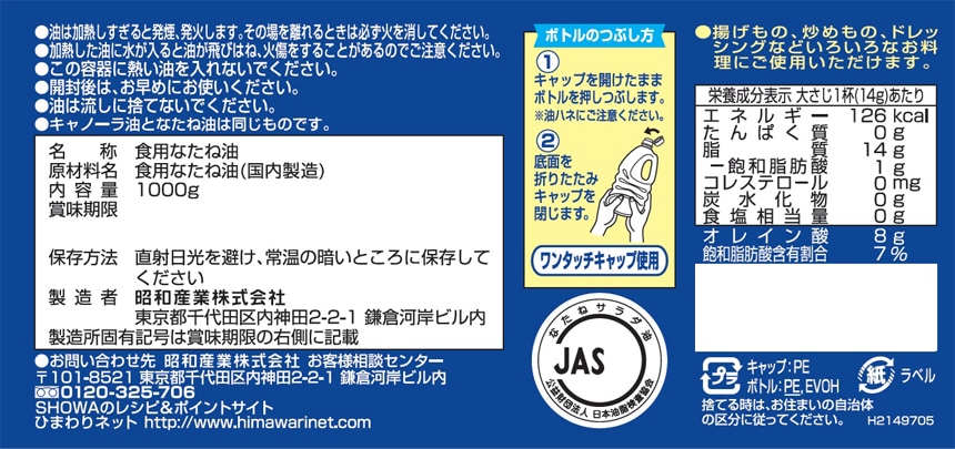 [12本]昭和産業 キャノーラ油 1000g | あっさりと軽やかな風味でいろいろなお料理にお使いいただけます