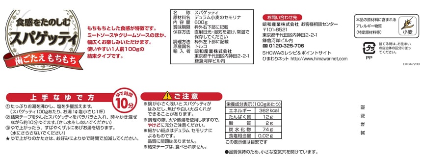 [2種計24個]昭和産業 結束スパゲッティ 1.4mm / 1.8mm 600g | デュラム小麦のセモリナを100%使用したスパゲッティ。使いやすい1人前100gの結束タイプ