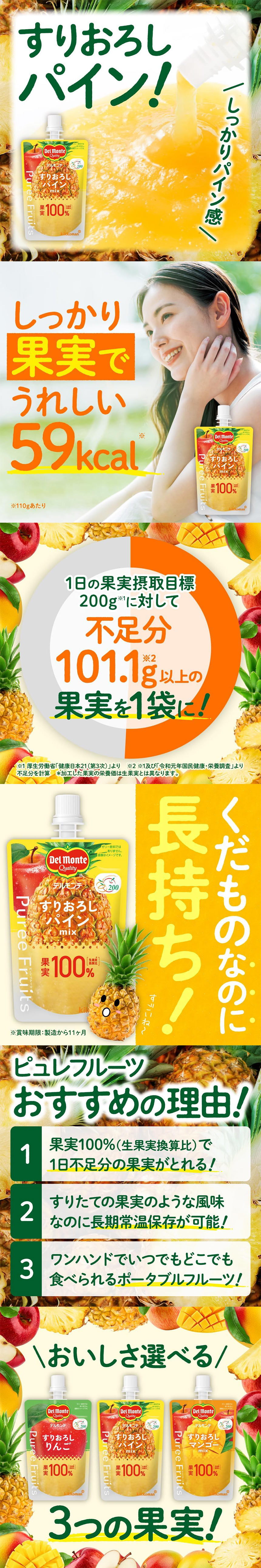 - デルモンテ ピュレフルーツ すりおろしパインミックス 110...
