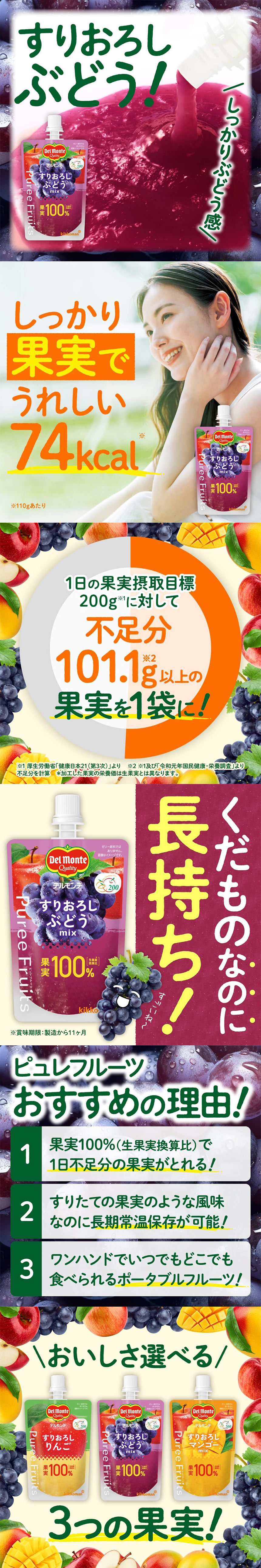 - デルモンテ ピュレフルーツ すりおろしぶどうミックス 110...