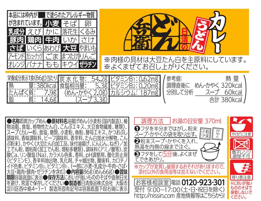 ・日清のどん兵衛 カレーうどん 86g (めん66g)×4食入 - 賞味期限