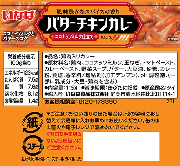 ・バターチキンカレー ラベル缶 115g×24個 - 賞味期限