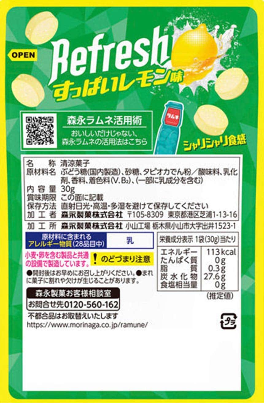 [20袋]森永製菓 大粒ラムネRefresh<すっぱいレモン> 30g | シャリシャリ食感