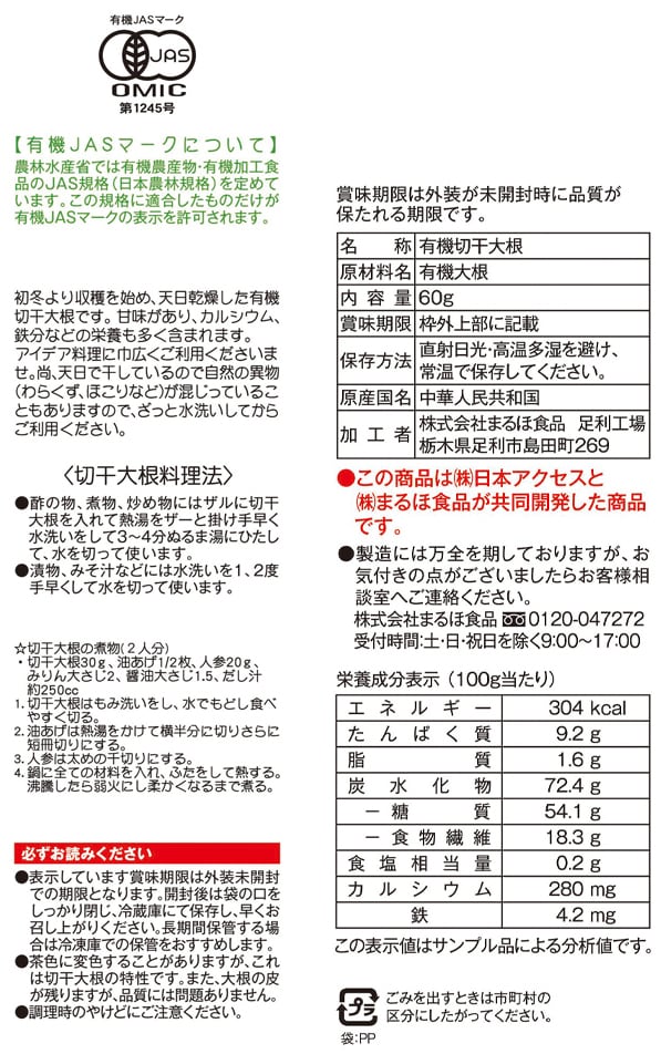 [40袋]日本アクセス みわび 有機切干大根 60g | 初冬より収穫を始め、天日乾燥した有機切干大根です。