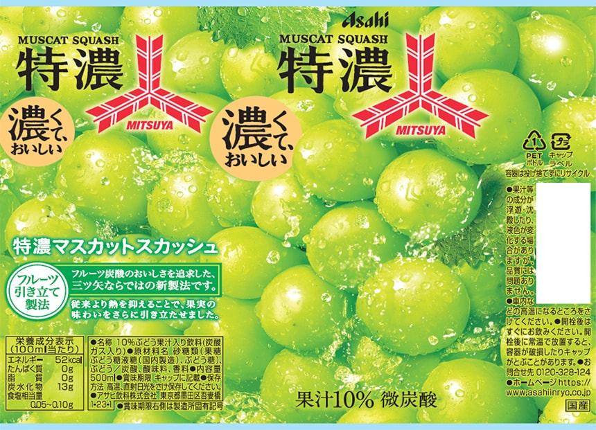 [48本]アサヒ飲料 三ツ矢 特濃マスカットスカッシュ PET 500ml | おいしい果実をまるかじりしたような味わい~濃くて、おいしい~