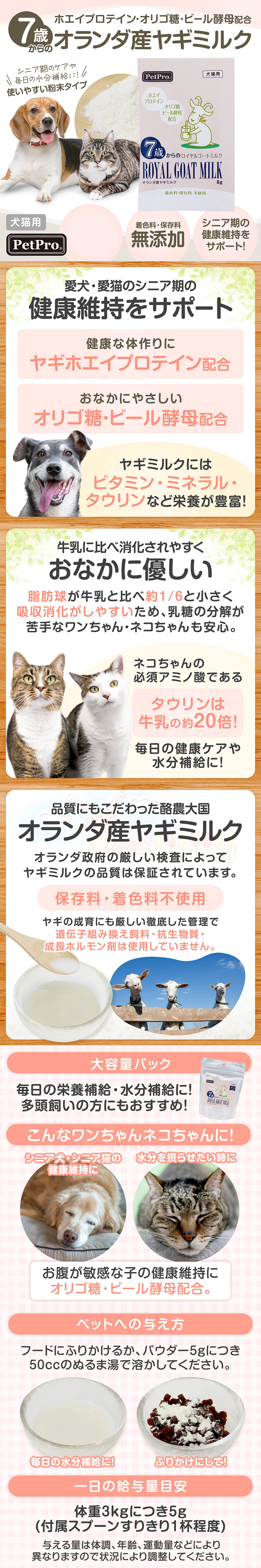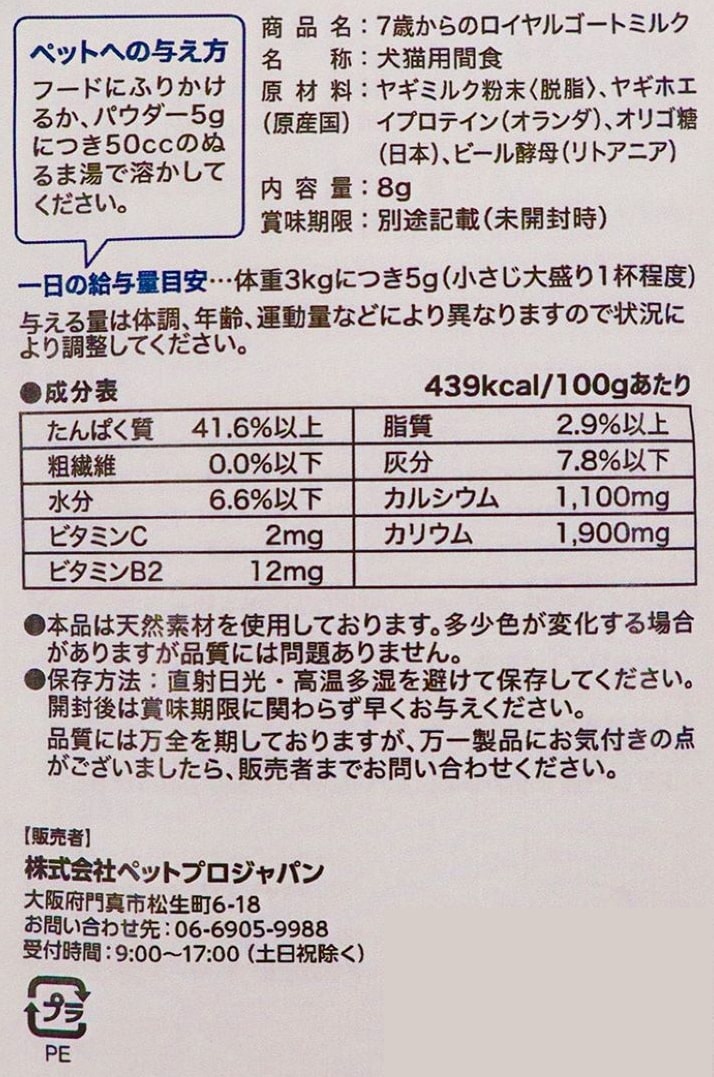 [15個]ペットプロジャパン 7歳からのロイヤルゴートミルク 8g | シニア期の健康に配慮したプロテイン入りのオランダ産ヤギミルク