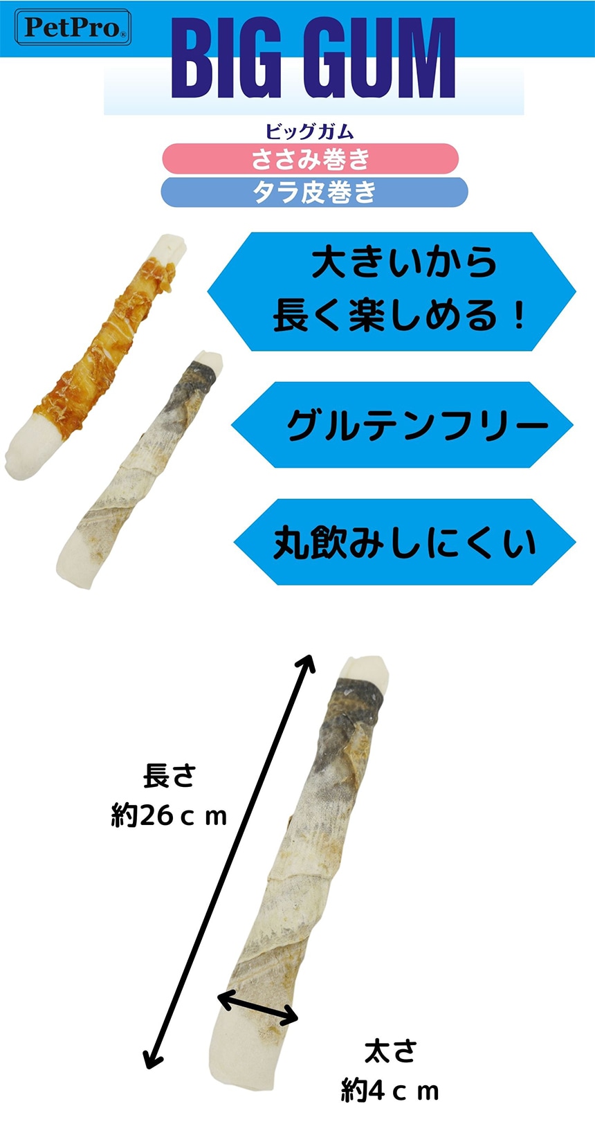 - ペットプロ BIGガム タラ皮巻き 1本入り