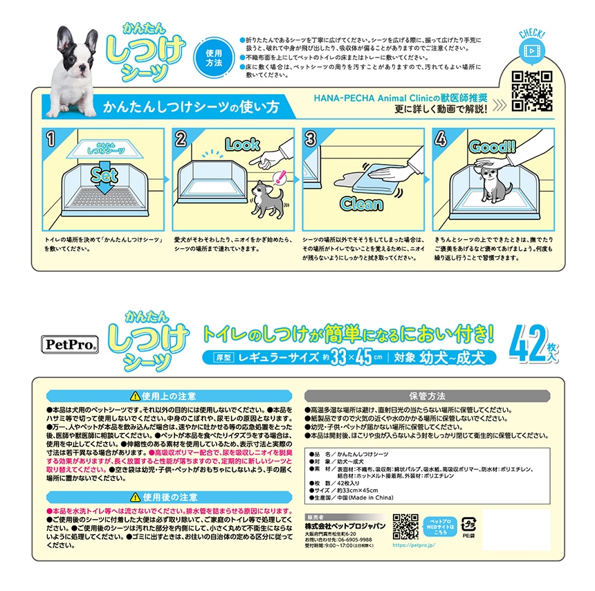 [1個]ペットプロジャパン ペットプロ かんたんしつけシーツ レギュラー 42枚 | 5層構造でスピード&スポット吸収!しつけに特化したシーツ
