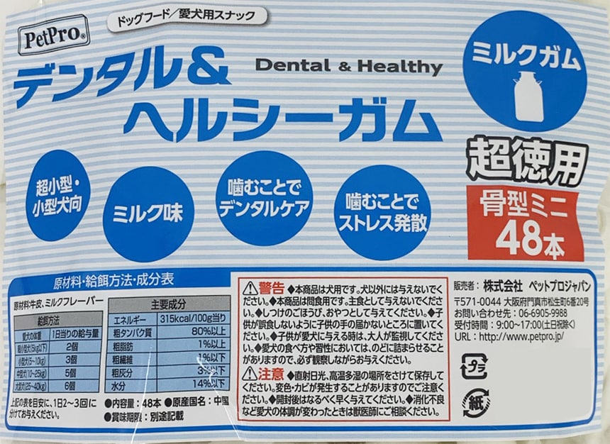 - ペットプロ デンタル&ヘルシーガム ミルクガム 超徳用 骨型ミニ 48本入