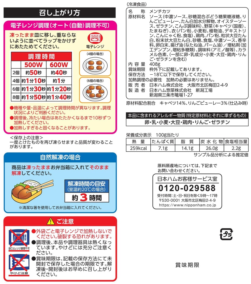 ソースキャベツメンチカツ 大容量パック 408g