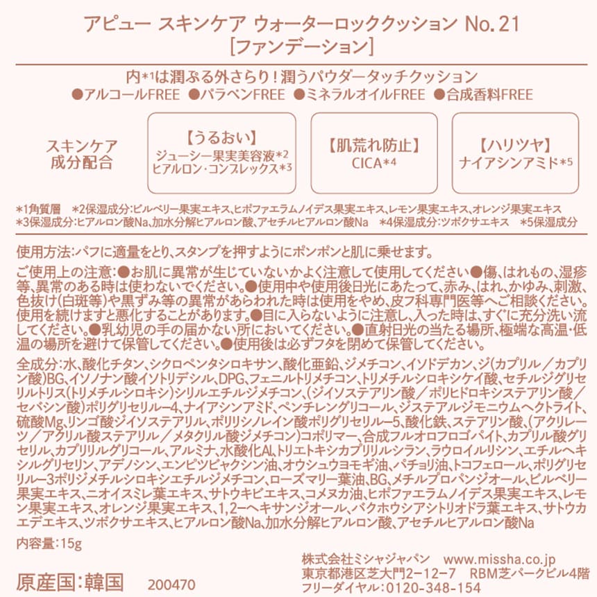 - アピュー スキンケア ウォーターロッククッション No.21 15g