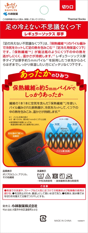 [12個]小林製薬 足の冷えない不思議なくつ下 レギュラーソックス 厚手 5mm 1足入 | 足あった~か包み込む特殊な保熱繊維を使用したカイロ屋が作った靴下です。