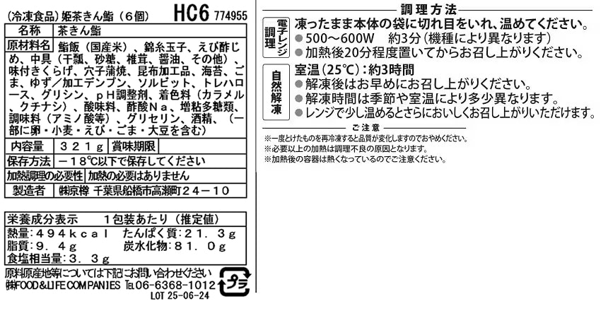 - ・冷凍 姫茶きん鮨(6個入) 321g×1袋