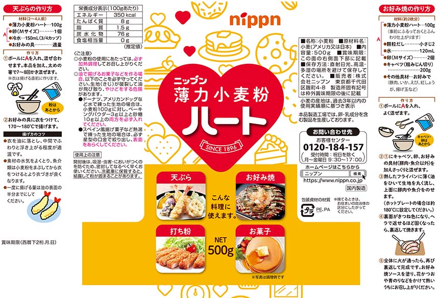 [20袋]ニップンハート (薄力小麦粉) 500g | 天ぷら、お好み焼き、打ち粉、お菓子作りに使えます。