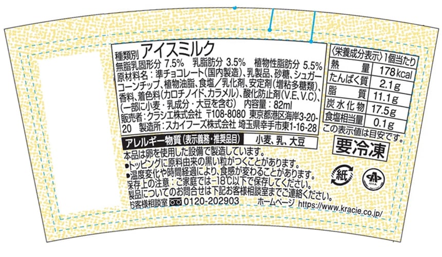 ※アイスクリーム類は、-18度以下での冷凍保存の状態では、品質の劣化が極めて小さい食品ということで、賞味期限の設定がされておりません。