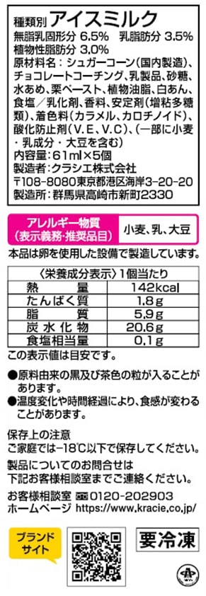 ※アイスクリーム類は、-18度以下での冷凍保存の状態では、品質の劣化が極めて小さい食品ということで、賞味期限の設定がされておりません。