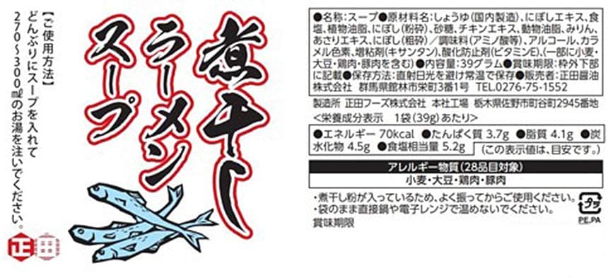 [計390食]正田醤油 煮干し ラーメンスープ 39g×78個×5袋 | しっかりとした煮干しの風味が楽しめるスープ。