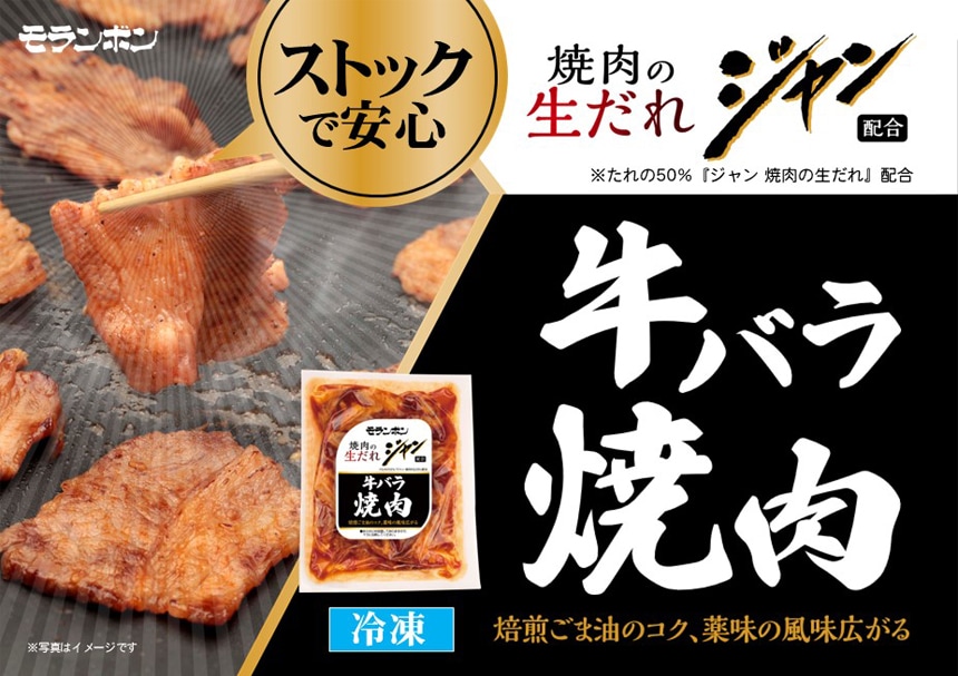 「ジャン 焼肉の生だれ」を配合したたれで漬け込んだ味付け焼肉です。