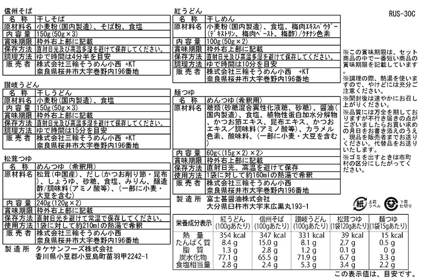 - RUS-30C 松茸つゆで食べる麺詰合せ