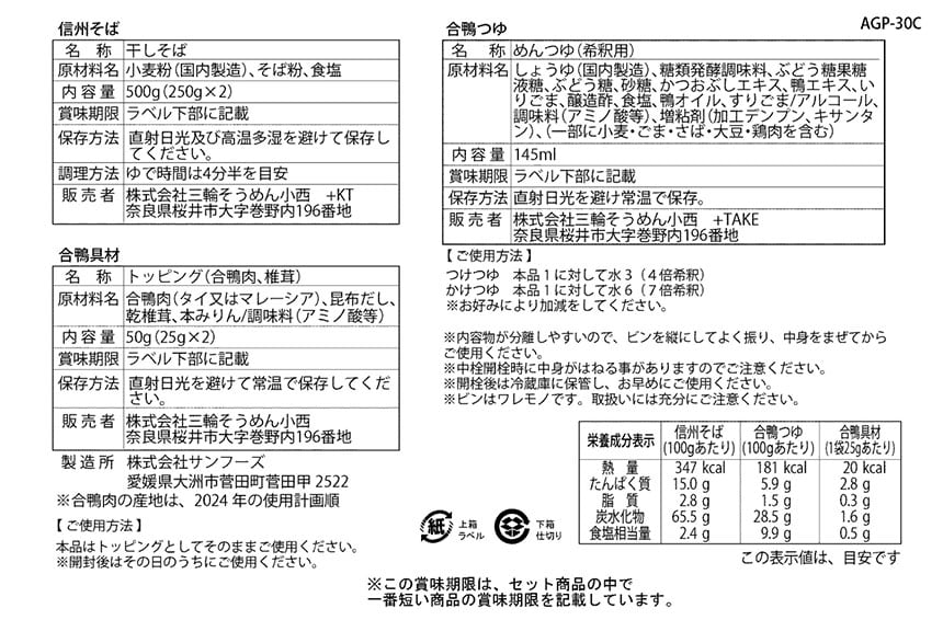 - AGP-30C 合鴨つゆで食べる信州そば