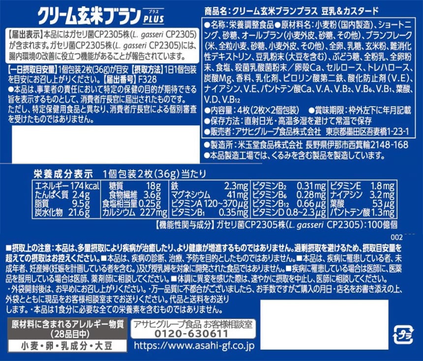 - ・【機能性表示食品】クリーム玄米ブランプラス 豆乳&カスタード 4枚(2枚×2個包装)×12個
