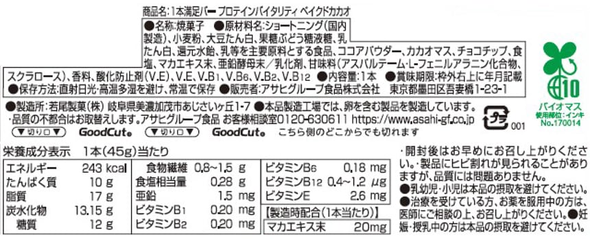 ・1本満足バー プロテインバイタリティ ベイクドカカオ 45g×1本