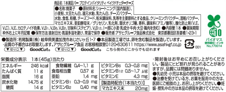・1本満足バー プロテインバイタリティ ベイクドチェダーチーズ 45g×1本