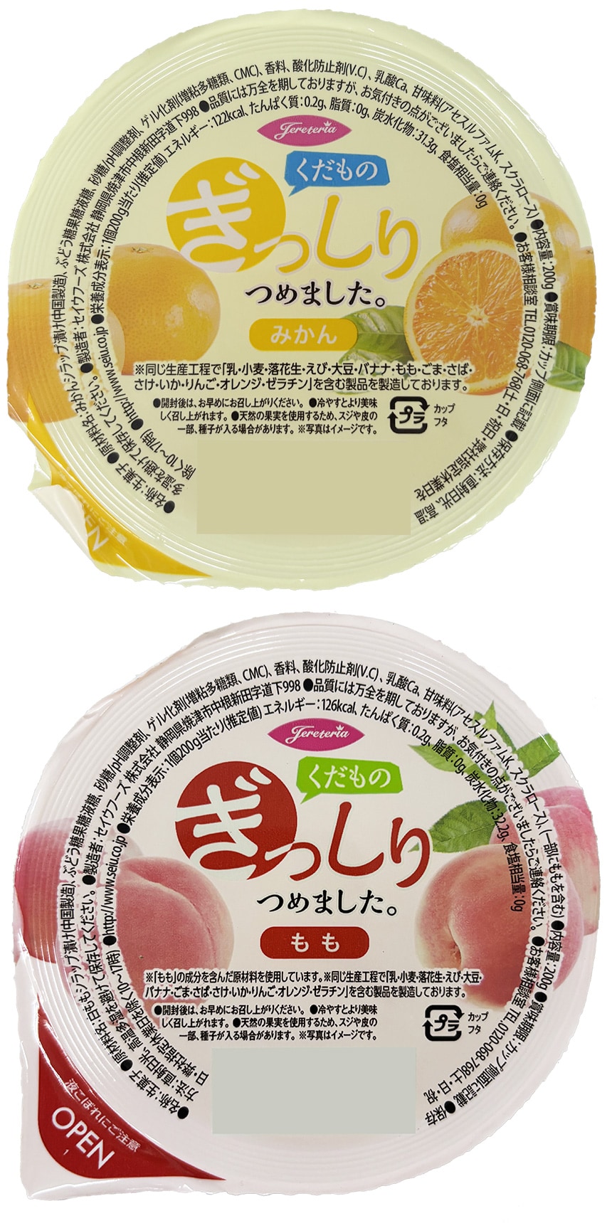 [2種計24個]セイウ Jeretería くだものぎっしり ( みかん 200g / 白桃 200g ) | フレッシュな果物がたっぷり入ったゼリー2種セット