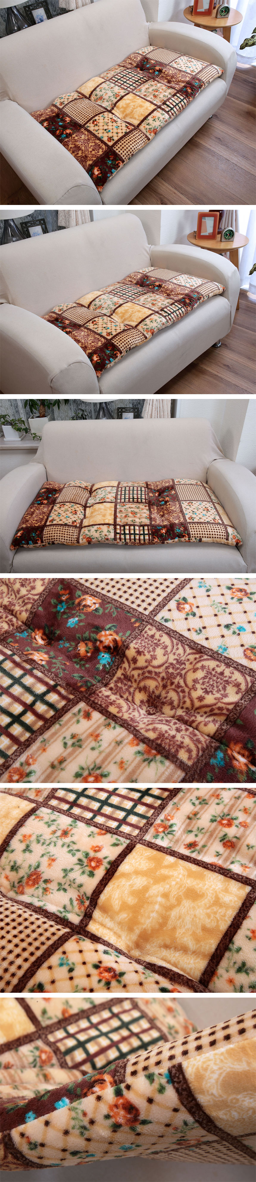 [2個]ガマカ工業 パッチワーク調ソファーパッド 2人掛 ベージュ | お手持ちのソファーの上に乗せて冬仕様に!