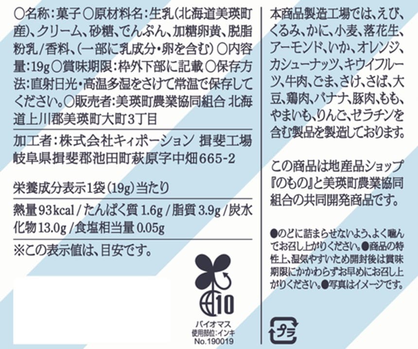 北海道美瑛町産の生乳を使用したフリーズドライのミルク菓子。