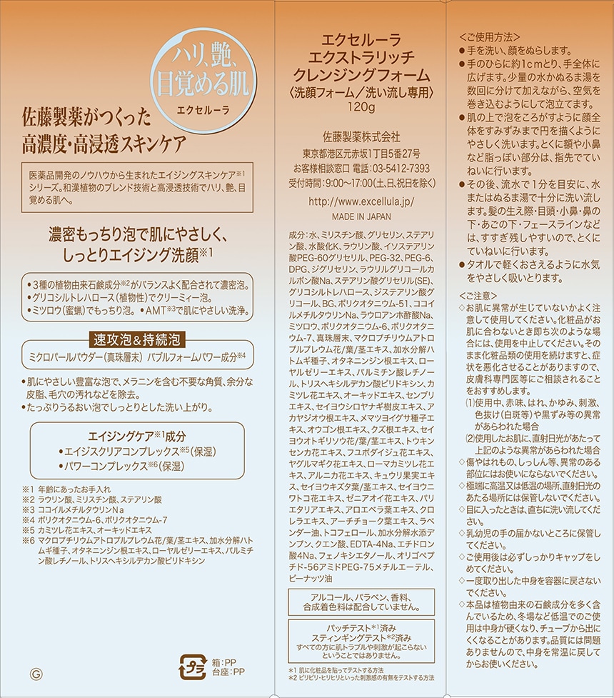 [12個]佐藤製薬 エクセルーラ エクストラリッチクレンジングフォーム 120g | 濃密もっちり泡で肌にやさしく、しっとりエイジング*洗顔* 年齢にあったお手入れ