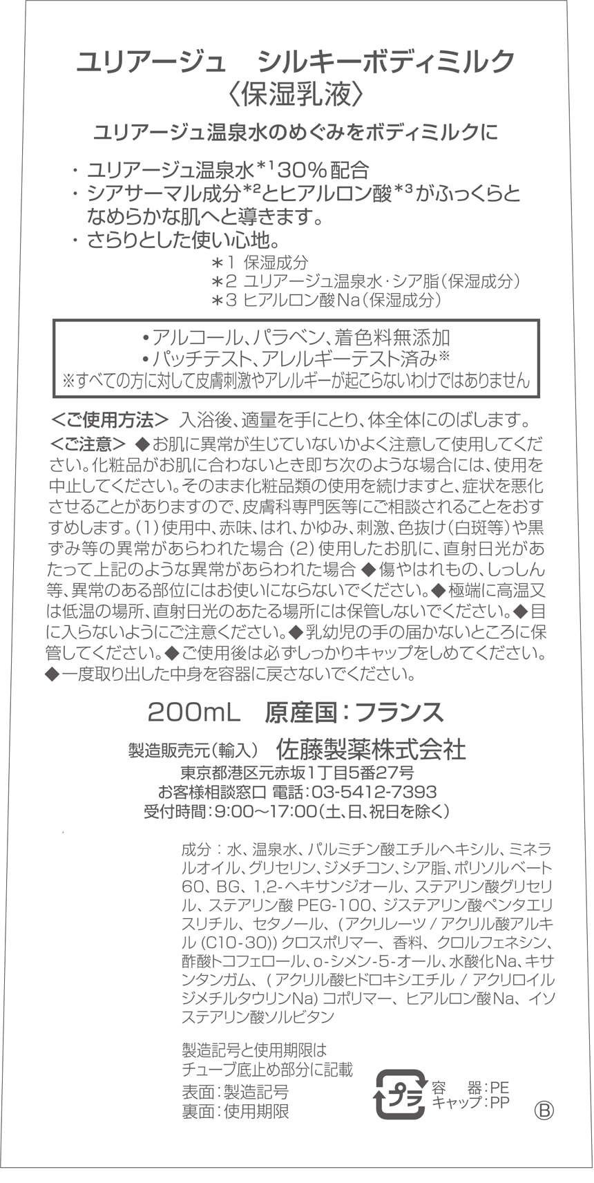 [12個]佐藤製薬 ユリアージュ シルキーボディミルク 200ml | ユリアージュ温泉水のめぐみをボディミルクに
