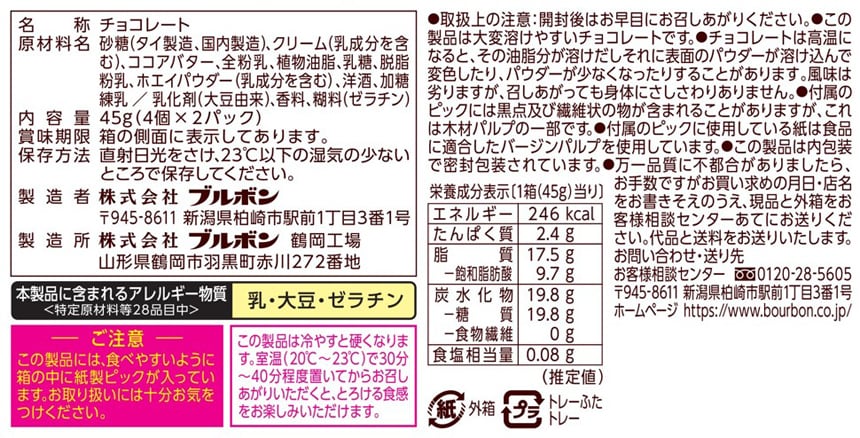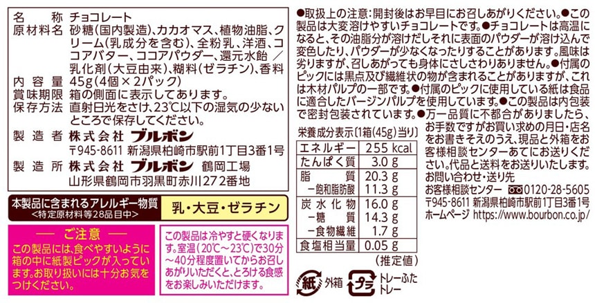 [2種計12個]ブルボン 生チョコレート 濃厚ミルク 45g / 芳醇カカオ 45g
