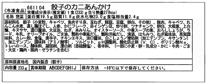 餃子にたっぷりのカニを使用したあんをかけた製品です。