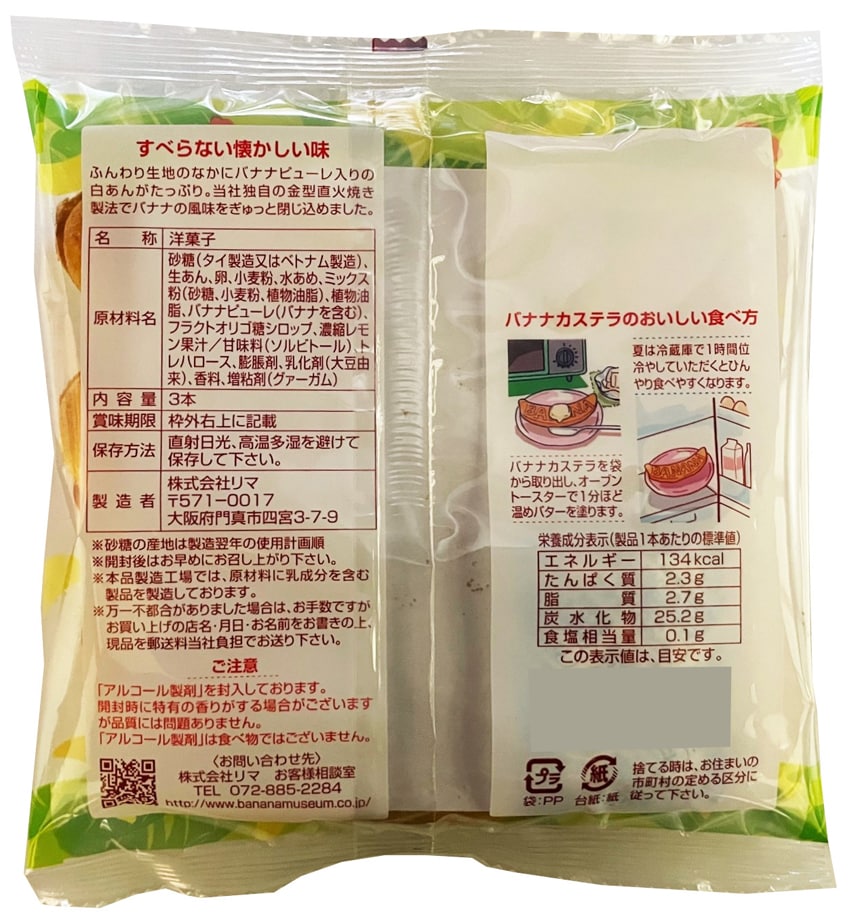 [計108本]リマ バナナカステラ 3本入×36袋 | ボリューム満点の3本入り