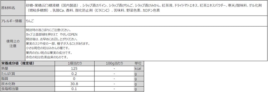 厳選3種のフルーツ果肉(みかん、りんご、パイン)がたっぷり入って、