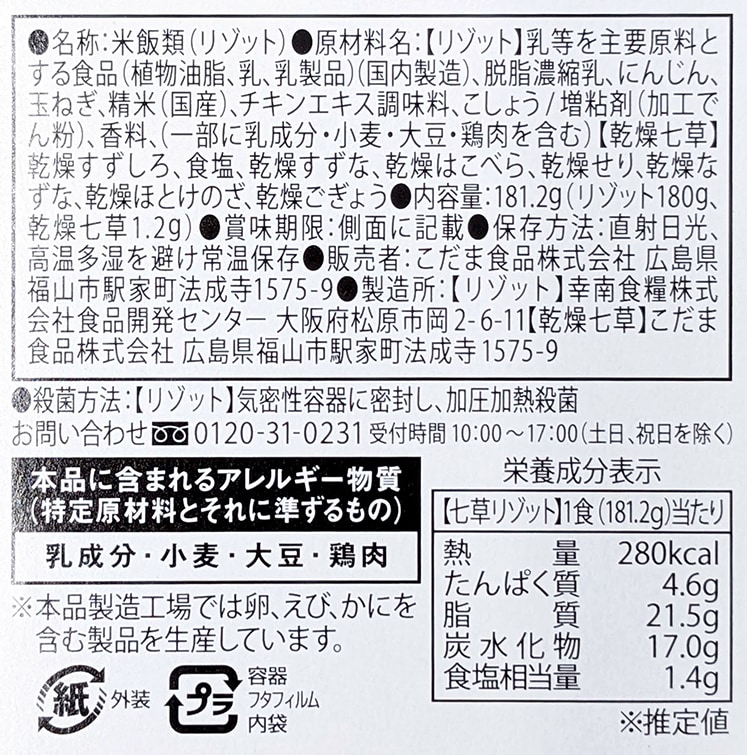 [24食]こだま食品 カップ入 ななくさのスープリゾット 181.2g | レンジ対応