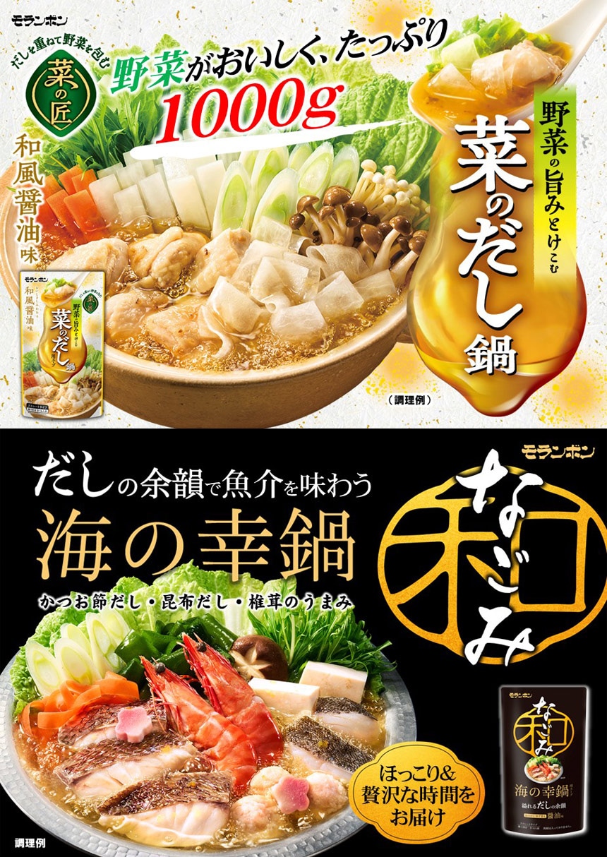 [2種計20袋]モランボン 菜の匠 菜のだし鍋用スープ 750g / 海の幸鍋用スープ なごみ 750g