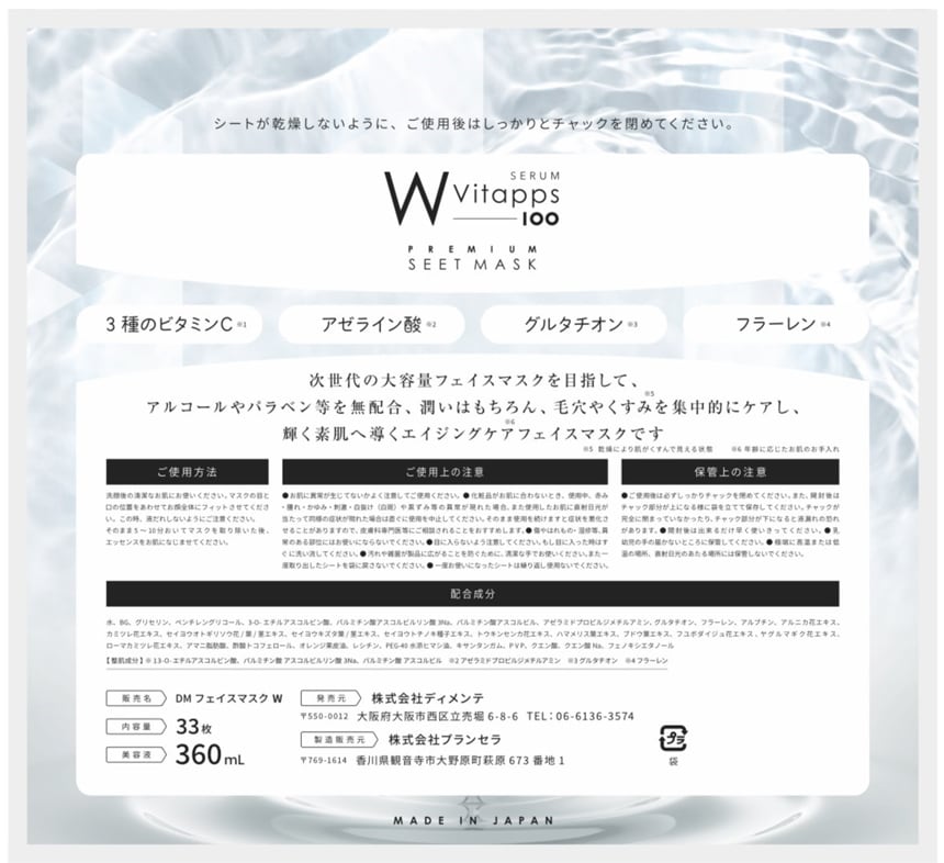 [3個]ディメンテ Vitapps Wプレミアムシートマスク 33枚入 | 美容成分たっぷりの美容液を6本分使用した濃密マスク 毛穴&くすみ 集中対策