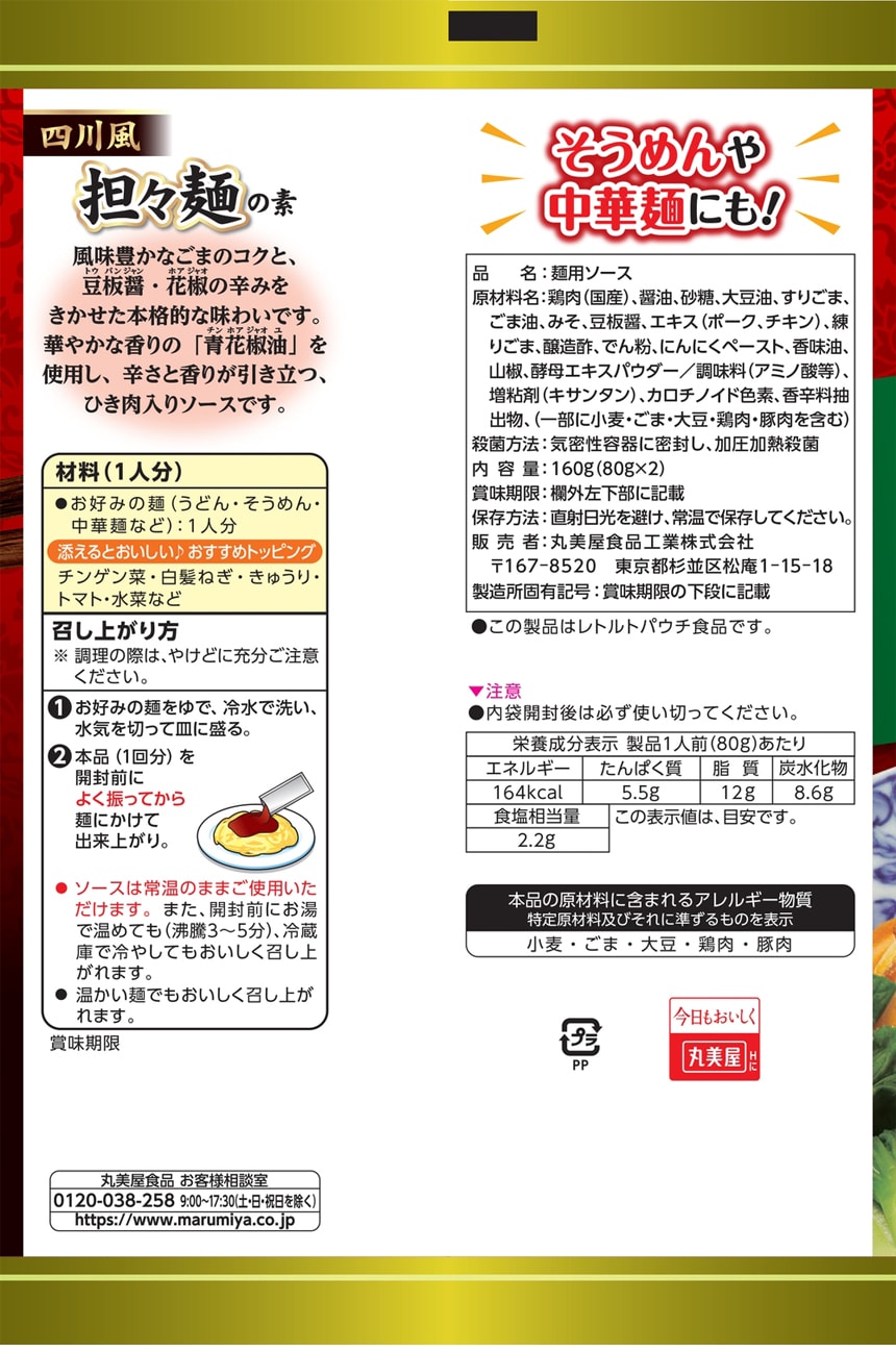 - ・かけうま! 四川風担々麺の素 160g(1人前×2回分)×8個