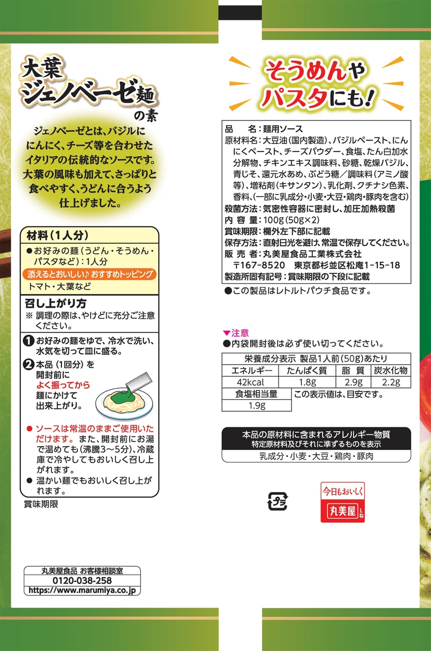 ・かけうま! 大葉ジェノベーゼ麺の素 100g(1人前×2回分)×8個 - 賞味期限